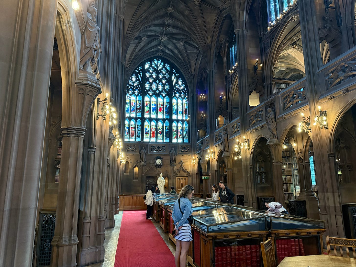 I could’ve wandered around this library all day. There were people set up with their laptops in quaint alcoves working, and I don’t know why anyone in Manchester would choose to work anywhere else.